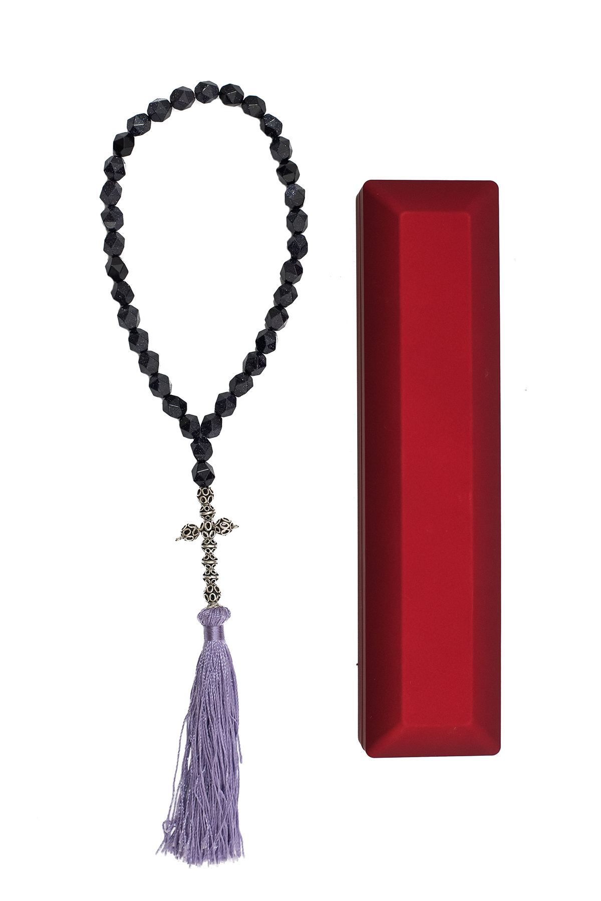 Велика бројаница Бројаница за молитву Производ је ручно израђен од сребра 925. филиграмских сребрних куглица финоће 955,  полудрагог камена садилита. Производи уметничка радионица.